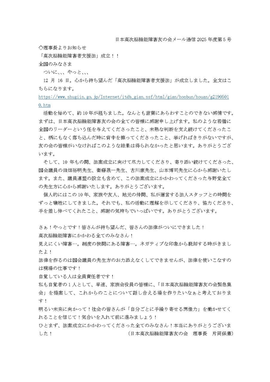 12月16日。心から待ち望んだ「高次脳機能障害者支援法」が成立しました。全文はこちらになります。